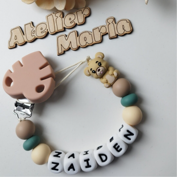 Attache tétine modèle standard prénom et une perle fantasie